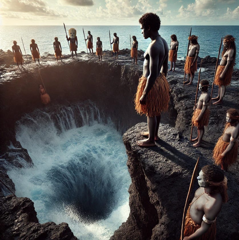 The tribe used to be feared throughout the archipelago—this trial was the reason, by making fearless warriors. Now, there were too few to wage war. The archipelago forgot about this tribe—this trial was the reason, by eliminating warriors. Still, they held the rite.